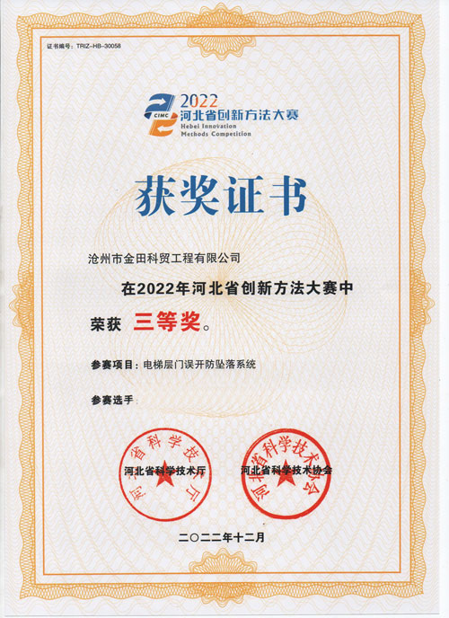 河北省創(chuàng)新方法大賽三等獎(jiǎng)